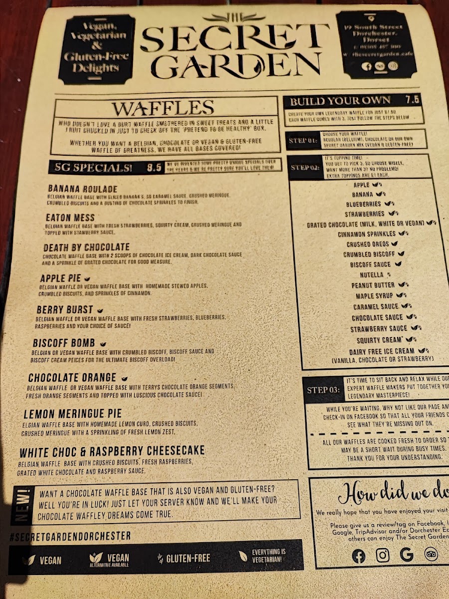 Welcome to The Secret Garden Café, nestled in the heart of Dorchester. This charming café offers a delightful menu that caters to all tastes, with a special focus on vegan and vegetarian options.